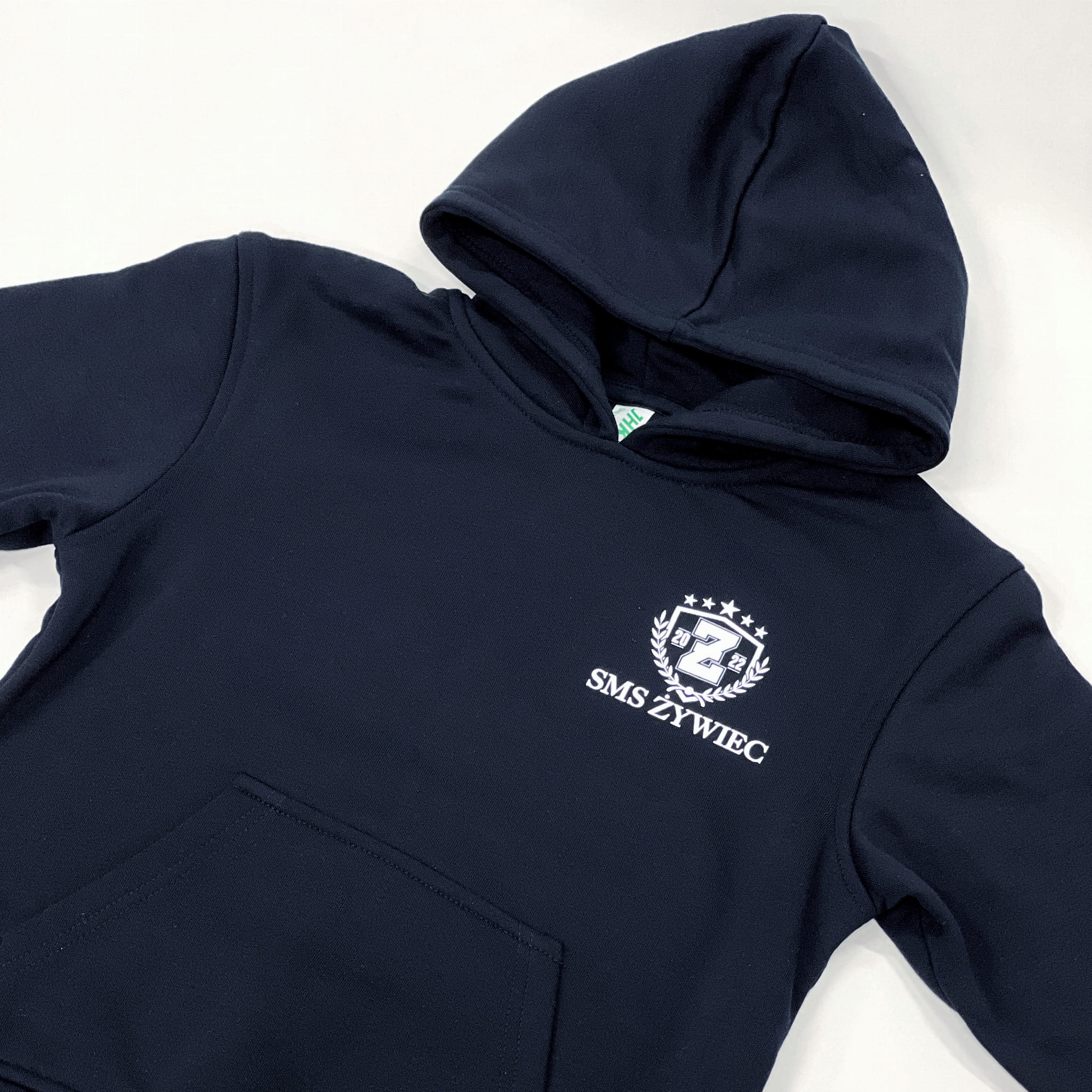 Bluza bawełniana z kapturem marki JHK 290g/m2 w kolorze Navy Blue z logo SMS ŻYWIEC z przodu na klatce piersiowej. Brak sublimacji na plecach. Dedykowana jest zarówno dla uczniów, jak i kibiców. Przyjazny oraz lekki materiał, który jest delikatny dla skóry, zapewnia komfort podczas użytkowania. Głęboki kaptur oraz kieszonka z przodu pełnią nie tylko funkcje wizualne, ale również praktyczne. Ściągacze zostały wzmocnione lycrą, dzięki czemu zapewniona została stabilizacja, a także swoboda.